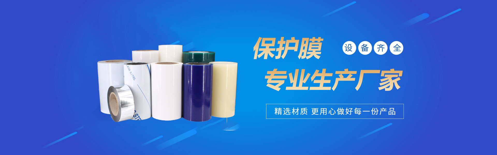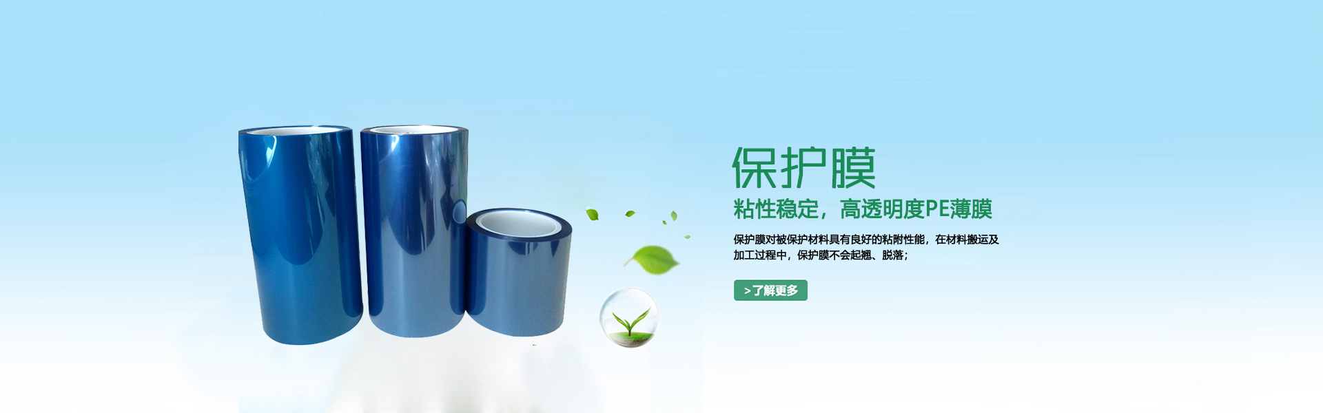 公司運用最新工藝設備、優質化工原料,專業生產表面保護膜,本公司生產的PE保護膜,廣泛應用于鋁塑板、彩鋼板、鏡面板、裝飾板以及鋁型材、塑鋼型材、不銹鋼板材的表面保護。產品有微粘、低粘、中粘、高粘和特高粘五大系列;基材有透明、乳白、藍色、黑白和印刷復合五類。可根據客戶需求生產2um-20um厚度,最寬可達180cm的各種薄膜,保護膜。